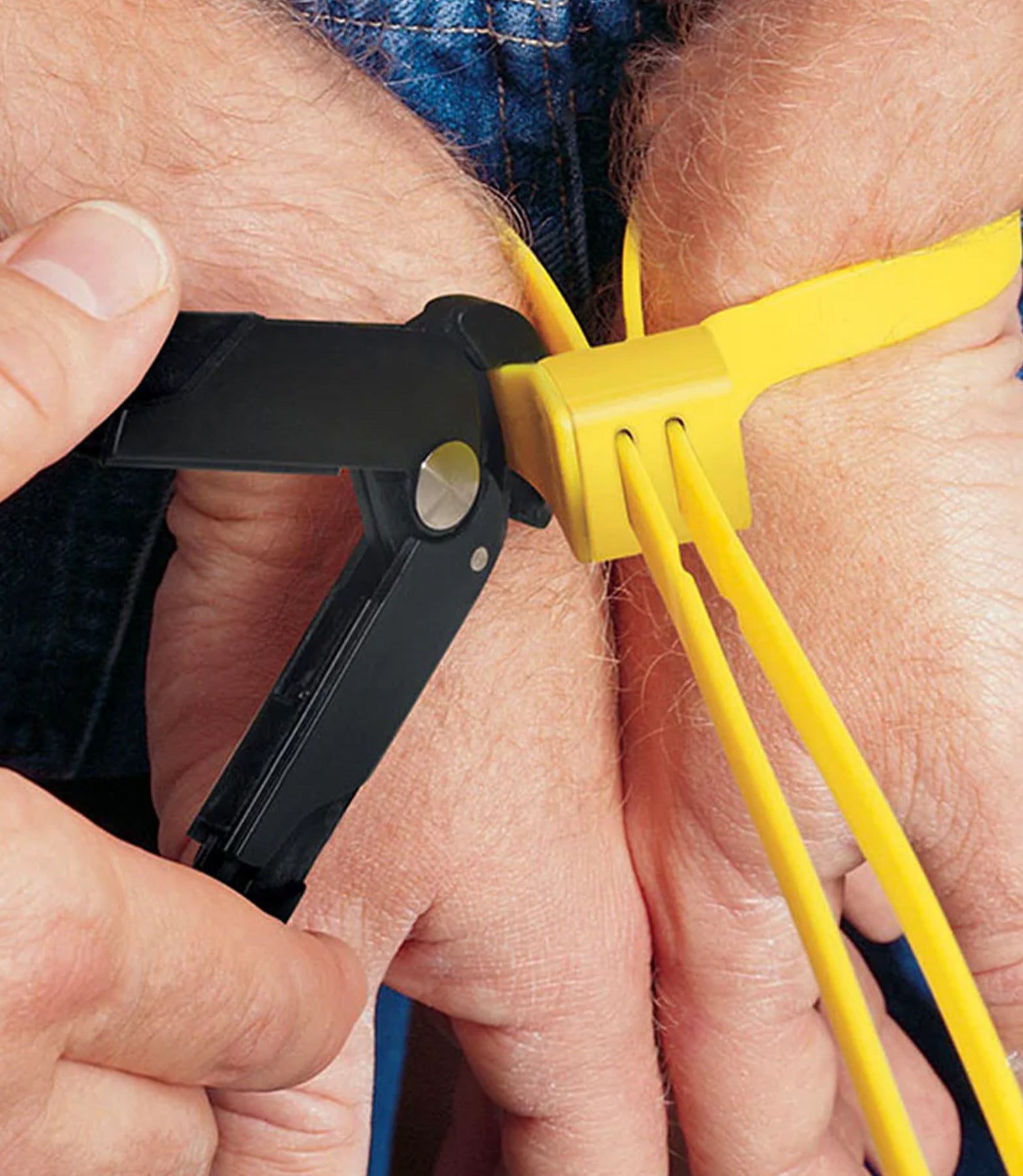 Scarab® הוא חותך קומפקטי וקל משקל, שתוכנן במיוחד להסרת אזיקי Tri-Fold חד-פעמיים. באמצעות מנגנון מינוף כפול, הכלי מאפשר חיתוך מהיר ומבוקר של האזיקים, תוך שמירה על בטיחות מלאה - ללא הצגת סכין או להב שעלולים לשמש כנשק נגד הכוח המבצע.