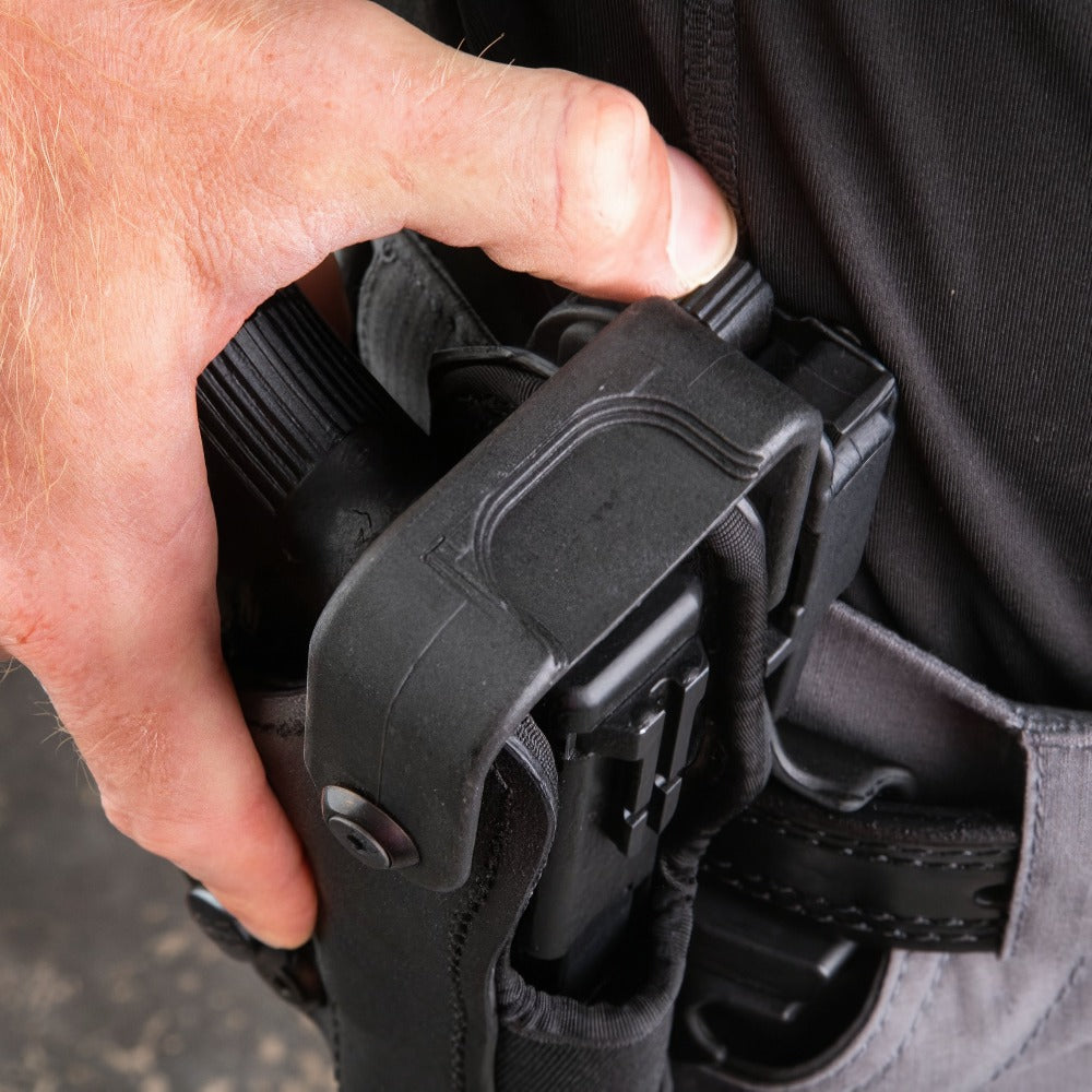 BFL - כולל רצועת לאבטחת הנרתיק על החגורה ומתאים לחגורות ברוחב של "2 (50 מ״מ), "1.5 (38 מ״מ) ו‑ "1.2 (30 מ״מ).