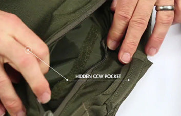 הכיס האחורי נפתח לכיס רגיל, בעוד שהקיר האחורי נפתח בחלקו העליון, חושף את תא ה-CCW המוסתר.