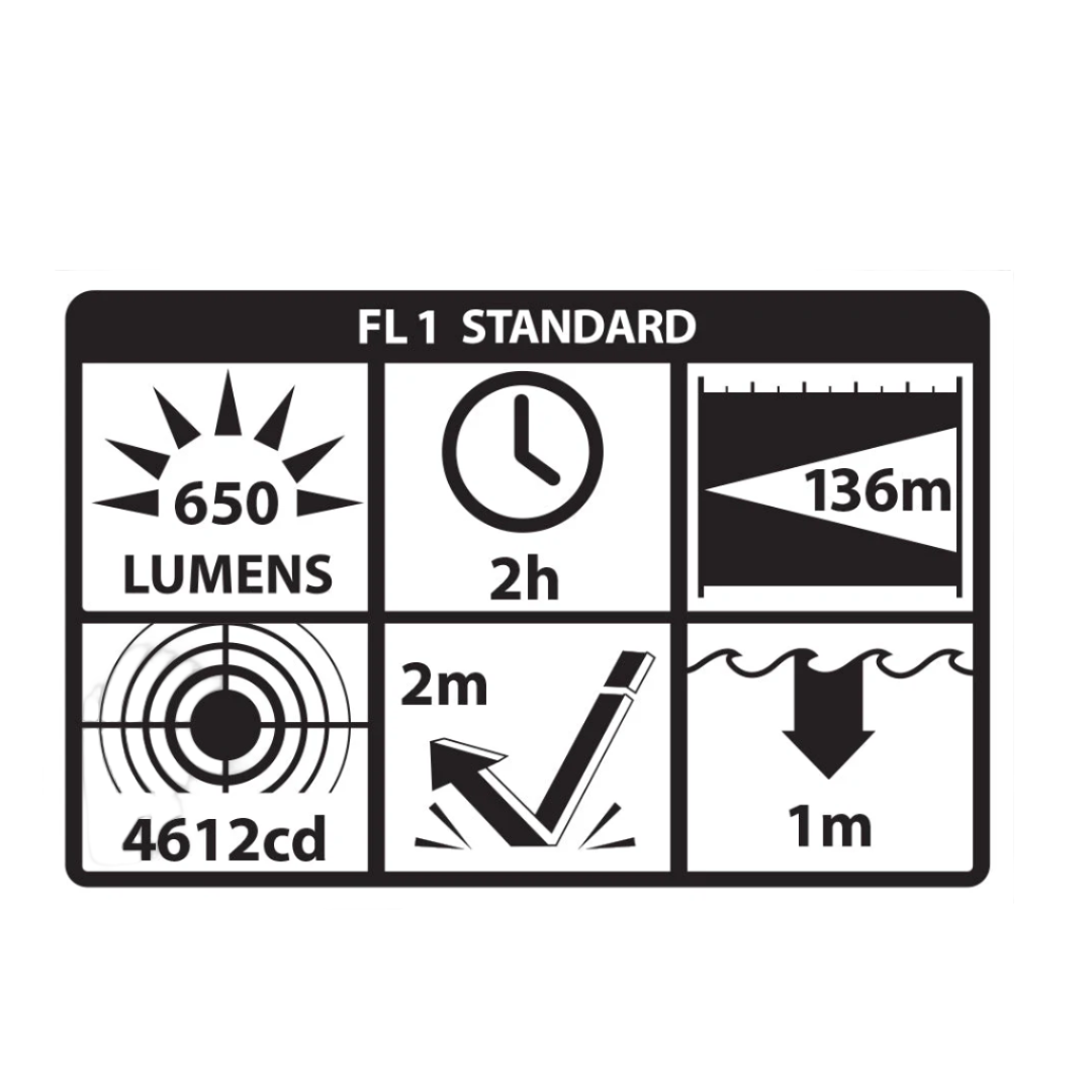 הפנס בנוי מאלומיניום תעופתי 6061-T6 עם חלק אחורי פולימרי, ומגיע עם סוללת ליתיום CR123 אחת.