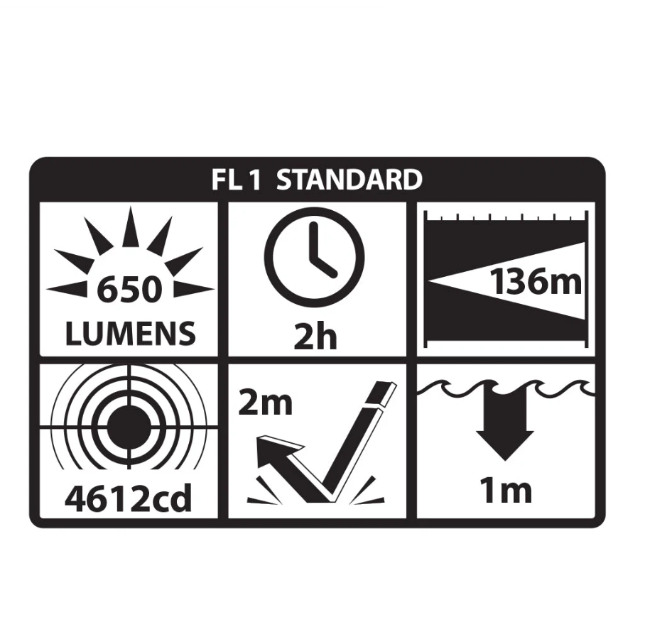 תכולת אריזה: פנס, שני ברגי אלן רזרביים, מפתח אלן 1.5 מ"מ, סוללת CR123 אחת