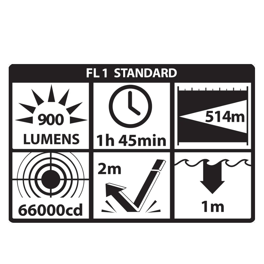 הפנס מספק זמן עבודה של כ-1.75 שעות באמצעות שתי סוללות CR123 הכלולות בערכה.